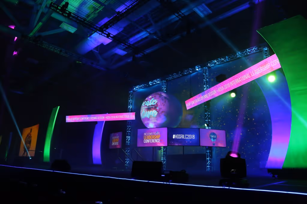 With everything being bigger in Texas, the 2018 ILC in Dallas allowed Cybis the space to create something special. We came up with more creative ways to excite the members of HOSA-Future Health professionals: bigger screens, a large center stage entrance, and the set’s focal point: a spherical globe projection screen. All of these elements were used to attract attention from every corner of the gigantic space.